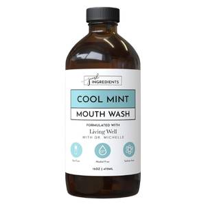 Cool mint remineralizing mouthwash with hydroxyapatite, colloidal silver, and alcohol-free.